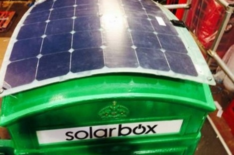 Το πρώτο Solarbox τοποθετήθηκε στην Tottenham Court Road του Λονδίνου και χρησιμοποιεί ηλιακό πάνελ για την παροχή ενέργειας. Φορτίζει κινητά τηλέφωνα, τάμπλετς, φωτογραφικές μηχανές και άλλες συσκευές.