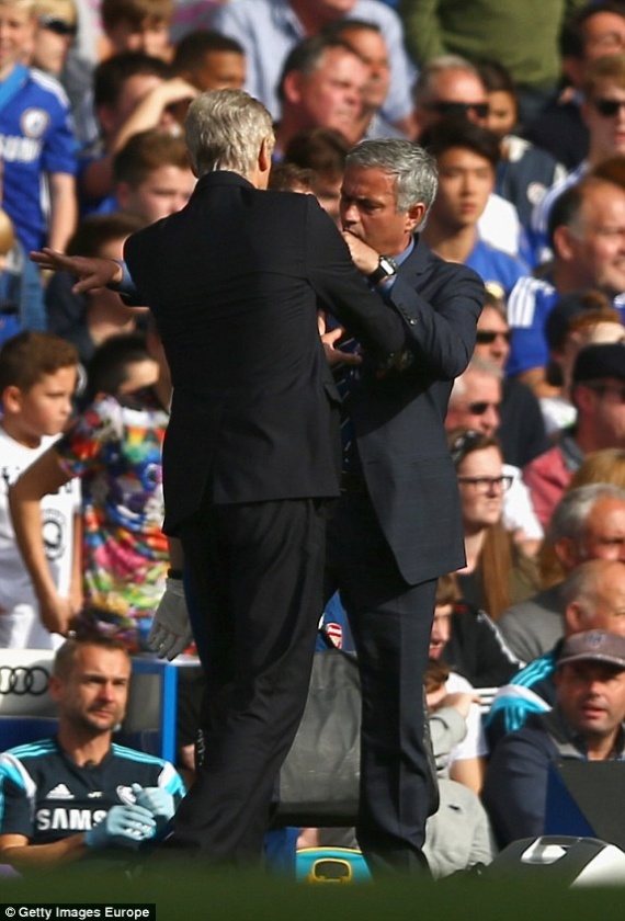 Κάποια στιγμή θα γινόταν. Ο Αρσέν Βενγκέρ και ο Ζοζέ Μουρίνιο πιάστηκαν στα χέρια στη διάρκεια του αγώνα Τσέλσι – Άρσεναλ. Ο Αλσατός διαμαρτυρήθηκε έντονα στον τέταρτο διαιτητή για ένα σκληρό φάουλ του Κέιχιλ στον Σάντσες, ο Πορτογάλος πήγε να διαμαρτυρηθεί επειδή ο τέταρτος ανεχόταν τις… διαμαρτυρίες του Βενγκέρ και τελικά οι δύο προπονητές πιάστηκαν στα χέρια.