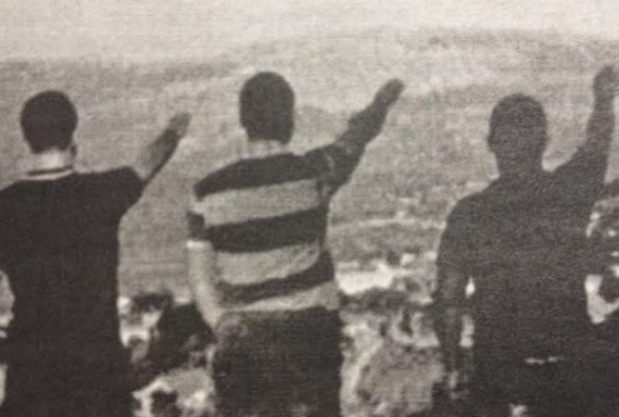 Την ίδια ώρα σε μία άλλη φωτογραφία εμφανίζονται τρεις χρυσαυγίτες να ατενίζουν τα ελληνοαλβανικά σύνορα προς την πλευρά της Βορείου Ηπείρου, χαιρετώντας φασιστικά.