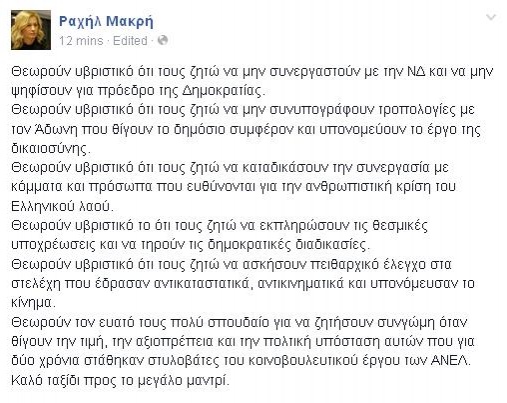 Πως σχολίαζει η Ραχήλ Μακρή τη διαγραφή της