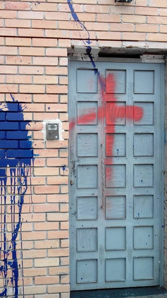 Οι υπεύθυνοι του Κέντρου αντίκρισαν το αποκρουστικό θέαμα της γουρουνοκεφαλής, των συνθημάτων που έγραφαν «γ@μώ το Ισλάμ» και ενός κόκκινου σταυρού στην πόρτα, όταν πήγαν να προσευχηθούν το πρωί.