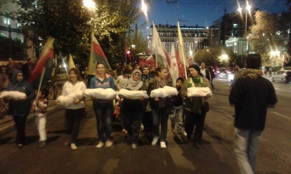 Οι περίπου 250 Κούρδοι πρόσφυγες, μαζί με μέλη ανθρωπιστικών οργανώσεων διαδήλωσαν ειρηνικά από την πλατεία Συντάγματος προς τα γραφεία του ελληνικού παραρτήματος της Ευρωπαϊκής Ένωσης, στη Λεωφόρο Βασιλίσσης Σοφίας, σε μια ακόμα απόπειρα ευαισθητοποίησης της κοινής γνώμης.