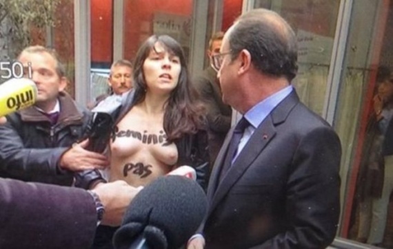 Να διαμαρτυρηθούν γυμνόστηθες στον Φρανσουά Ολάντ, την ώρα που ετοιμαζόταν να κάνει δηλώσεις για το θάνατο του νεαρού ακτιβιστή Ρεμί Φρεζ, επέλεξαν δύο μέλη της φεμινιστικής οργάνωσης Femen.
