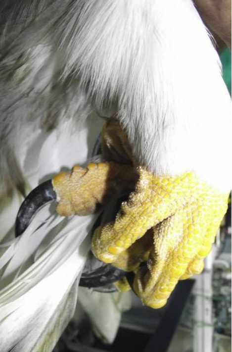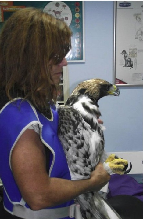 Μέλη του Συλλόγου Προστασίας και Περίθαλψης Αγριας Ζωής «Anima» φροντίζουν το σπάνιο πτηνό.