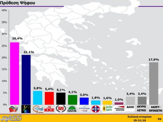 Μπροστά τον ΣΥΡΙΖΑ με 5,3 ποσοστιαίες μονάδες έναντι της ΝΔ αλλά και επτακομματική βουλή αναδεικνύει η δημοσκόπηση της RASS για λογαριασμό του iefimerida.gr.