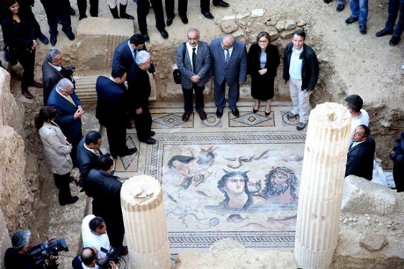 Μάλιστα, στις φωτογραφίες φαίνεται και το επιτελείο της δημάρχου Φατμά Σαχίντο, τα μέλη του οποίου στέκονται πάνω στα ψηφιδωτά δάπεδα.
