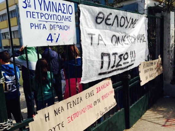 Στο τρίτο γυμνάσιο Πετρούπολης, το οποίο τελεί υπό κατάληψη βρέθηκε το «Π» και μίλησε με τους μαθητές προκειμένου να διαπιστώσει τους λόγους για τους οποίους προχώρησαν στην κατάληψη.
