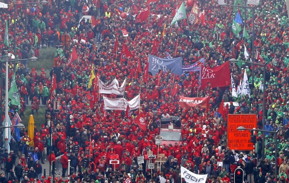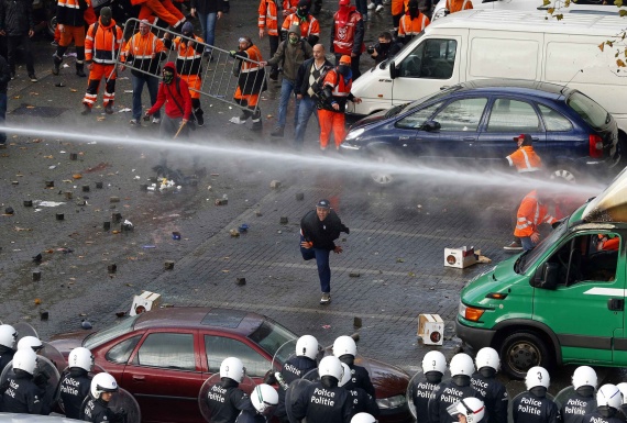 Η μεγαλειώδης διαδήλωση στο κέντρο των Βρυξελών, στην οποία συμμετείχαν περισσότεροι από 100.000 πολίτες, πήρε βίαιη τροπή όταν η αστυνομία έκανε περιορισμένη χρήση δακρυγόνων. Η οργή του πλήθους ξεχείλισε με αποτέλεσμα τις σφοδρές συγκρίσεις και τον τραυματισμένο διαδηλωτών αλλά και αστυνομικών.