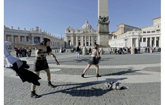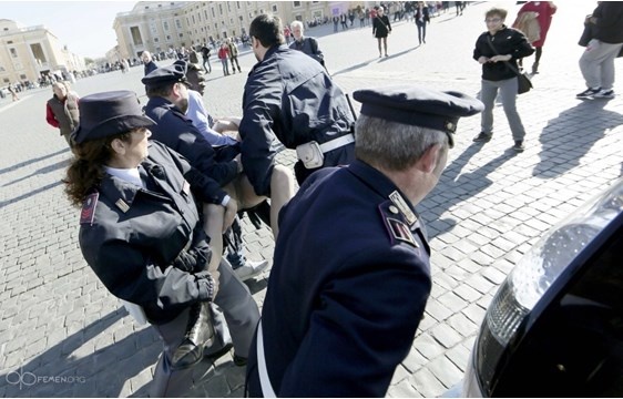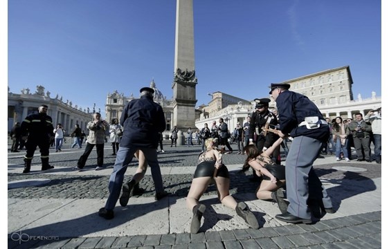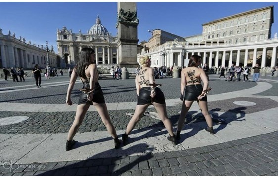 Ποικίλες αντιδράσεις έχει προκαλέσει στο διαδίκτυο η απόφαση τριών μελών της φεμινιστικής οργάνωσης FEMEN να διαδηλώσουν γυμνόστηθες μπροστά από την πλατεία του Αγίου Πέτρου τραβώντας παράλληλα προκλητικές φωτογραφίες με τον εσταυρωμένο.
