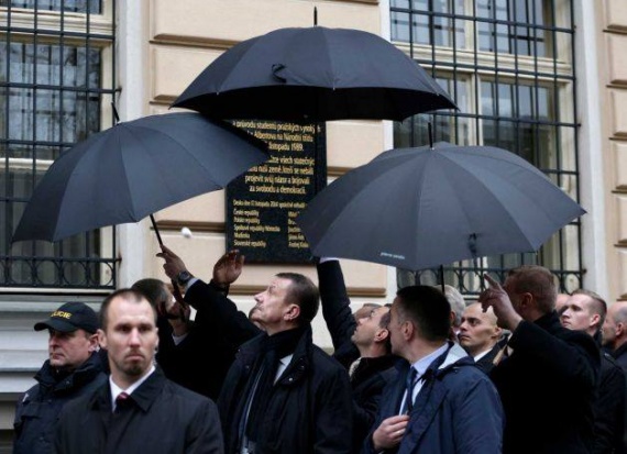 Εκτός του επικεφαλής του γερμανικού Κράτους, οι πρόεδροι της Ουγγαρίας Γιάνος Άντερ, της Πολωνίας Μπρόνισλαβ Κομορόφσκι και της Σλοβακίας Αντρέι Κίσκα συμμετείχαν στις τελετές, που πραγματοποιήθηκαν στο πλαίσιο των εκδηλώσεων για την 25η επέτειο της «Βελούδινης Επανάστασης» που οδήγησε στην πτώση του κομμουνισμού στην πρώην Τσεχοσλοβακία.