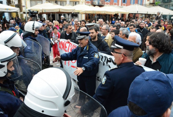 Στο κέντρο του Ναυπλίου εκατοντάδες διαδηλωτές φώναζαν συνθήματα κατά της κυβερνητικής πολιτικής. Μάλιστα υπήρξε ένταση όταν επιχείρησαν να σπάσουν τον αστυνομικό κλοιό.