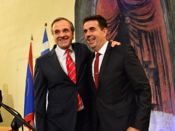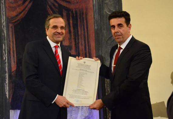 Τιμάμε σήμερα τον άνθρωπο Αντώνη Σαμαρά, υπογράμμισε ο δήμαρχος της πόλης Δημήτρης Κωστούρος και πρόσθεσε απευθυνόμενος στον πρωθυπουργό: «Σας τιμά μια πόλη που αντιστέκεται στη βία των λίγων».