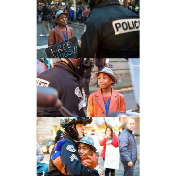 Σύμφωνα με δημοσιεύματα διαδηλωτών που ήταν παρόντες στο περιστατικό, ο αστυνομικός πλησίασε τον μικρό Devonte και τον ρώτησε γιατί κλαίει. Ο πιτσιρικάς του απάντησε ότι ανησυχεί για την αυξανόμενη αστυνομική βία απέναντι σε νεαρούς μαύρους. Στη συνέχεια ο αστυνομικός τον ρώτησε εάν μπορούσε να έχει μία από αυτές τις αγκαλιές, ο νεαρός απάντησε θετικά, η στιγμή έγινε φωτογραφία και πλέον ταξιδεύει σε ολόκληρο τον κόσμο.