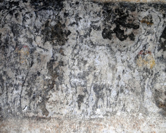 Στο φως ήρθαν με τις εργασίες συντήρησης παραστάσεις στα μαρμάρινα τμήματα των "επιστυλίων". Ορισμένες από αυτές απεικονίζουν ένα ζώο που είναι πιθανόν ταύρος καθώς και δύο μορφές εν κινήσει, μία γυναικεία και μία ανδρική. Μάλιστα μπορεί κανείς να διακρίνει δεξιά της γυναικείας και αριστερά της ανδρικής μορφής φτερωτές μορφές ενώ τα χρώματα του κόκκινου, του μπλε και της ώχρας έχουν αφήσει εμφανή ίχνη.