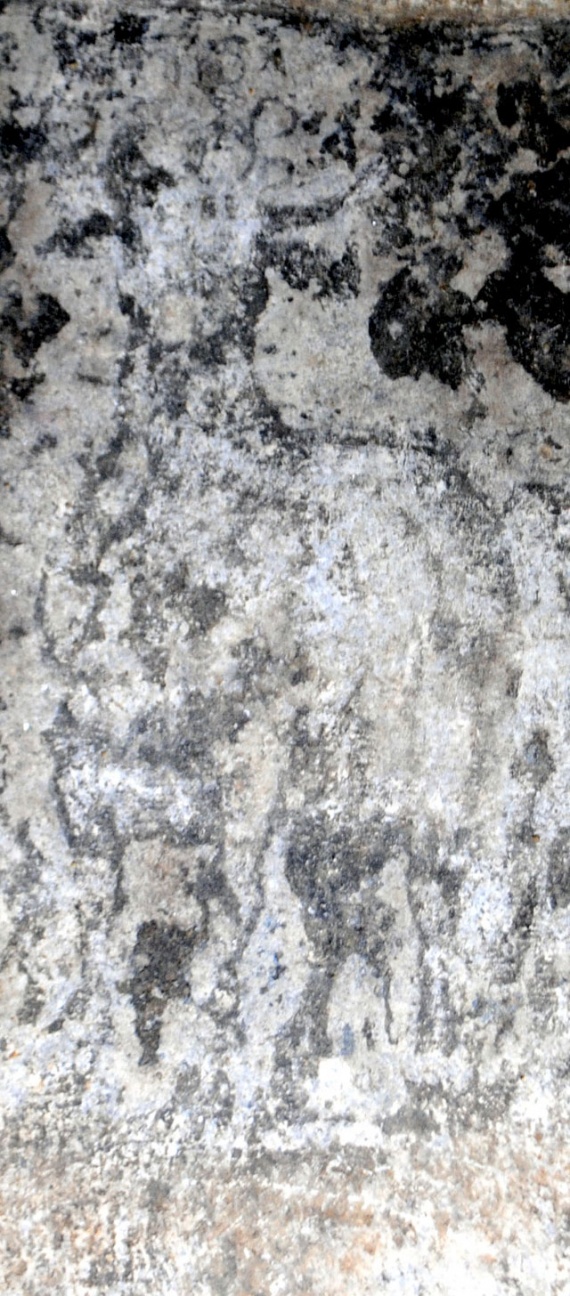 Στο ένα από τα τμήματα των “επιστυλίων”, κατά την πρώτη φάση των εργασιών συντήρησης, η οποία βρίσκεται ακόμη σε εξέλιξη, διακρίνονται στο κέντρο ζώο, πιθανόν ταύρος και εκατέρωθεν δύο μορφές, εν κινήσει, γυναικεία και ανδρική. Δεξιά της γυναικείας και αριστερά της ανδρικής διακρίνονται υδρίες και φτερωτές μορφές. Η δεξιά φτερωτή μορφή κατευθύνεται προς ένα τριποδικό λέβητα. Σε πολλά σημεία της παράστασης, όπως στο ένδυμα και στην κεφαλή της γυναικείας μορφής, στο ένδυμα της ανδρικής και της φτερωτής μορφής και στον τρίποδα, είναι εμφανή ίχνη από χρώματα κόκκινο, μπλε και ώχρα.