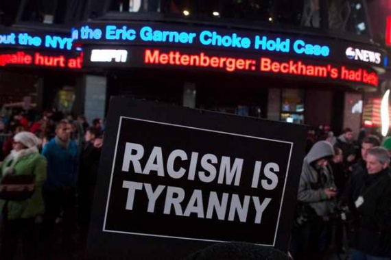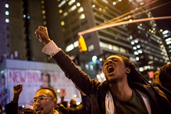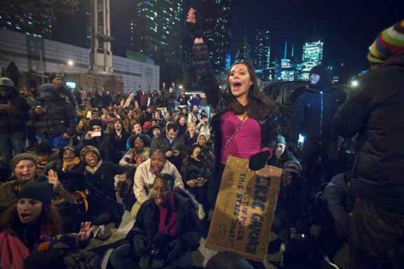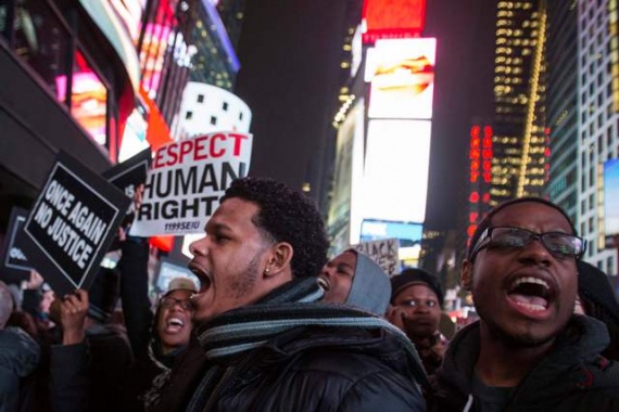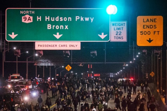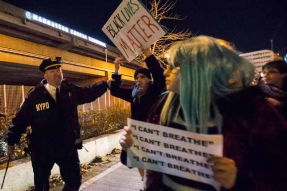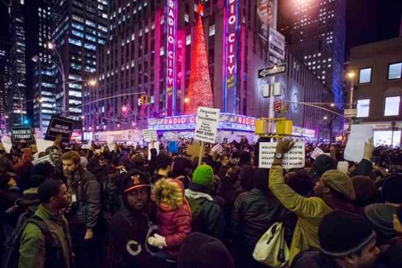 Χιλιάδες διαδηλωτές κατέκλυσαν τους δρόμους της Νέας Υόρκης μετά την ανακοίνωση της απόφασης του Σώματος Ενόρκων της πόλης για τη μη παραπομπή σε δίκη του αστυνομικού που έπνιξε, προκαλώντας του ασφυξία, μαύρο μικροπωλητή το περασμένο καλοκαίρι.