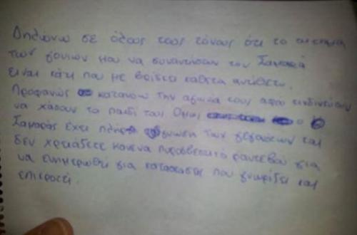 Το χειρόγραφο του Ν.Ρωμανού, αναφέρει χαρακτηριστικά: "Δηλώνω σε όλους τους τόνους ότι το αίτημα των γονιών μου να συναντήσουν τον Σαμαρά είναι κάτι που με βρίσκει κάθετα αντίθετο. Προφανώς κατανοώ την αγωνία τους αφού κινδυνεύουν να χάσουν το παιδί τους. Όμως ο Σαμαράς έχει πλήρη γνώση των γεγονότων και δεν χρειάζεται κανένα πυροσβεστικό ραντεβού για να ενημερωθεί για κατάσταση που γνωρίζει και επικροτεί."