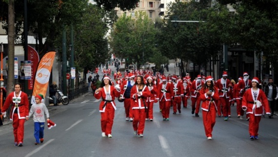 Περίπου 800 άτομα ντύθηκαν με στολές Αη Βασίλη και έτρεξαν το πρωί 2,5 χλμ. στο κέντρο της Αθήνας (Πανεπιστημίου, Πεσμαζόγλου, Σταδίου, Αμαλίας, Πανεπιστημίου) στο πλαίσιο της υιοθέτησης του θεσμού του «Santa Run».