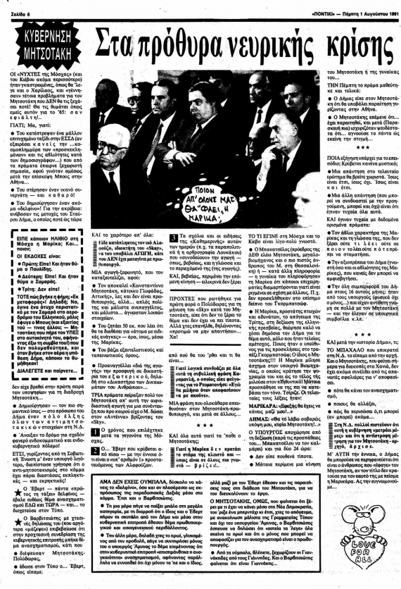 Βρήκαμε στο αρχείο μας και σας παρουσιάζουμε, ολόκληρο το ρεπορτάζ από το επεισόδιο ανάμεσα στη Μαρίκα Μητσοτάκη και τον υποψήφιο Πρόεδρο της Δημοκρατίας Σταύρο Δήμα, που εκτυλίχθηκε στις 27 Ιούλη του 1991 και δημοσιεύτηκε στο «Π» την 1η Αυγούστου της ίδιας χρονιάς.