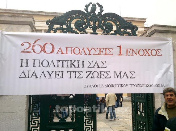 Σε συμβολική κατάληψη του κτιρίου Διοίκησης του Πανεπιστημίου Αθηνών προχώρησαν οι διοικητικοί υπάλληλοι του Πανεπιστημίου Αθηνών διαμαρτυρόμενοι για το θέμα της διαθεσιμότητας.
