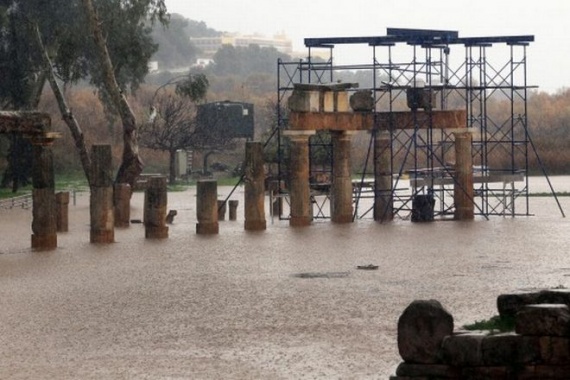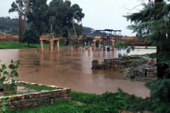 Θλίψη προκάλεσαν οι εικόνες που δείχνουν το ναό της Αρτέμιδος στη Βραυρώνα και τον περιβάλλων αρχαιολογικό χώρο, βουτηγμένους στα λασπόνερα.