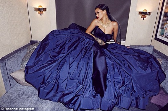 Φορώντας ένα μπλε φόρεμα, έκανε την εμφάνισή της η Ριάνα στην φιλανθρωπική εκδήλωση Diamond Ball.