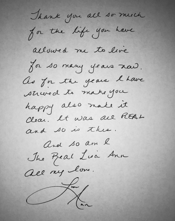 «Σας ευχαριστώ όλους για τη ζωή που μου επιτρέψατε να ζήσω, για τόσα χρόνια. Όσα για τα χρόνια που έπαιζα για να σας κάνω χαρούμενους να το ξεκαθαρίσω. Ήταν όλα πραγματικά και τέτοιο είναι και αυτό (το χειρόγραφο). Και έτσι είμαι και εγώ.