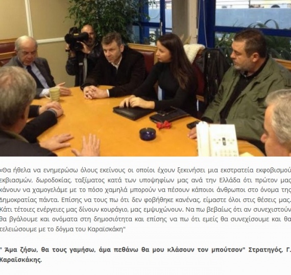 «Θα ήθελα να ενημερώσω όλους εκείνους οι οποίοι έχουν ξεκινήσει μία εκστρατεία εκφοβισμού εκβιασμών, δωροδοκίας, ταξίματος κατά των υποψηφίων μας ανά την Ελλάδα ότι πρώτον μας κάνουν να χαμογελάμε με το πόσο χαμηλά μπορούν να πέσουν κάποιοι άνθρωποι στο όνομα της Δημοκρατίας πάντα.