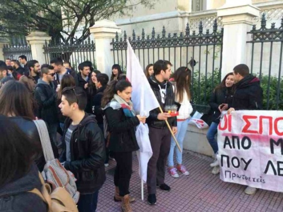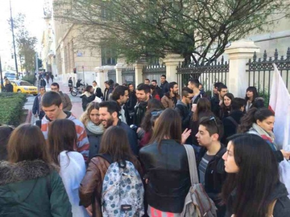 Συγκέντρωση διαμαρτυρίας κατά του "φρένου" στις μετεγγραφές πραγματοποιούν φοιτητές της Αρχιτεκτονικής του ΕΜΠ και του πανεπιστημίου Μακεδονίας, έξω από το Συμβούλιο της Επικράτειας, που συνεδριάζει για το ζήτημα.