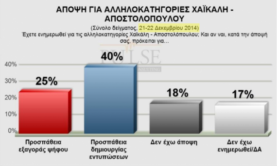 Ειδικότερα, ο ΣΥΡΙΖΑ συγκεντρώνει 28,5%, η ΝΔ 25% και ακολουθούν ΠΑΣΟΚ με 6,5%, τοΠοτάμι με 5,5%, η Χρυσή Αυγή με 5,5%, το με ΚΚΕ 5%, και οι Ανεξάρτητοι Έλληνες με 3,5%.