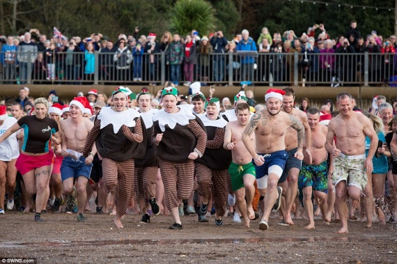 Χιλιάδες κολυμβητές συγκεντρώνονται κάθε χρόνο στη νοτιοδυτική περιοχή της Μ. Βρετανίας, Ντόρσετ, για την ετήσια βουτιά τους την ημέρα των Χριστουγέννων.