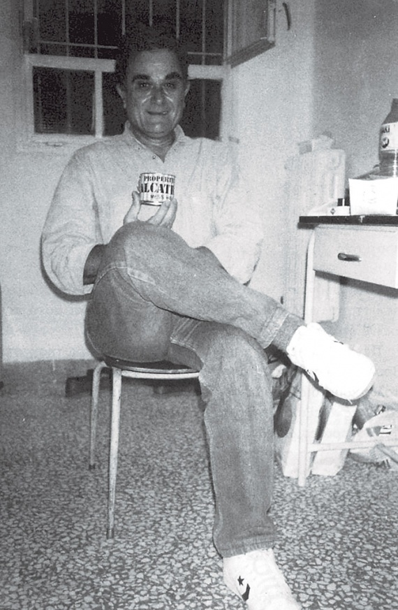 Σεπτέμβριος του 1991, φυλακισμένος στον Κορυδαλλό με τον τρομονόμο της κυβέρνησης Μητσοτάκη επειδή δημοσίευσε προκήρυξη της 17Ν. Ο Φυντανίδης κρατά στο χέρι του κούπα-σουβενίρ από το Αλκατράζ.