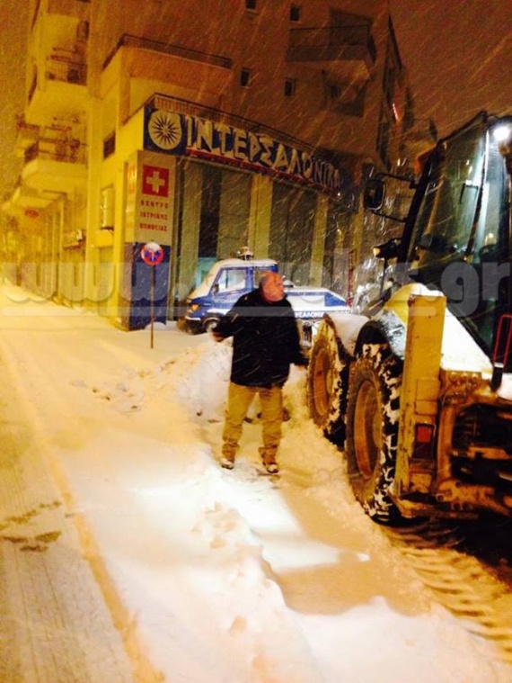Ο Δήμαρχος Βόλου, συνέδραμε με την παρουσία του, τα χαράματα τα συνεργεία που προσπαθούσαν να απομακρύνουν τα χιόνια από τους δρόμους της πόλης.