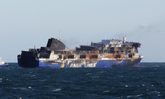 Συγκλονιστικές είναι οι φωτογραφίες που αποτυπώνουν την έκταση που πήρε η φωτιά στο Norman Atlantic.