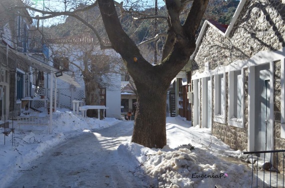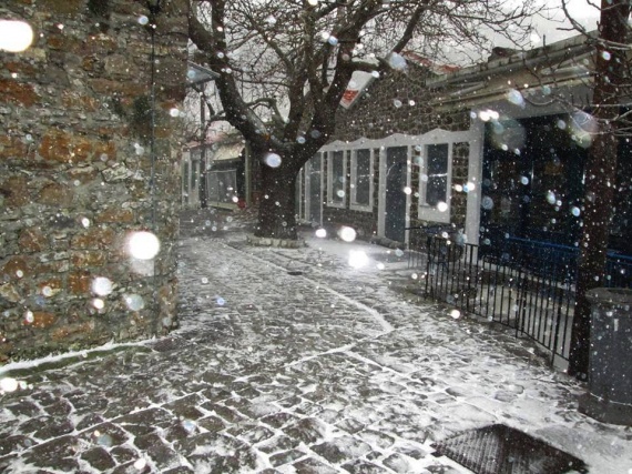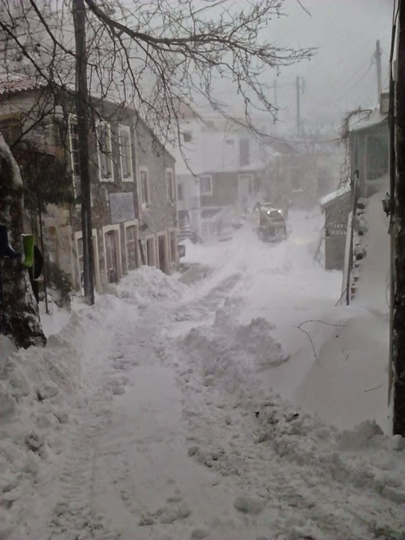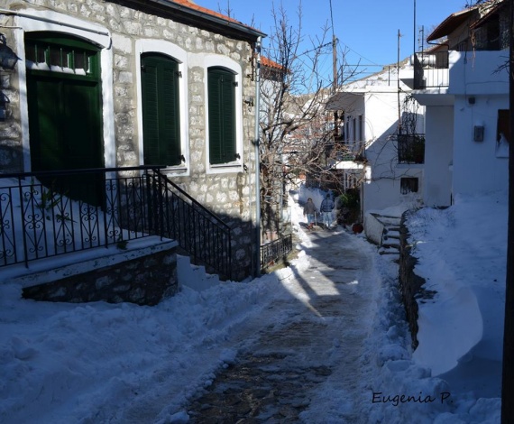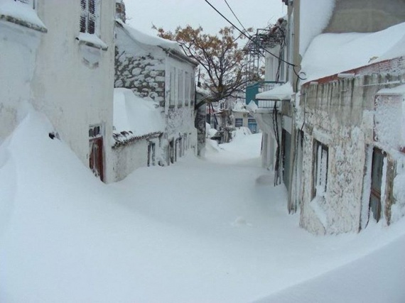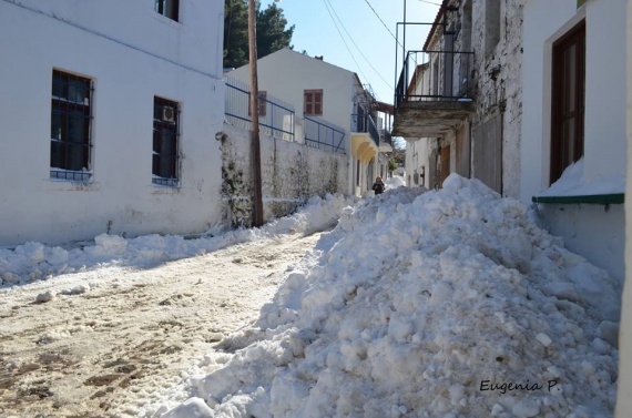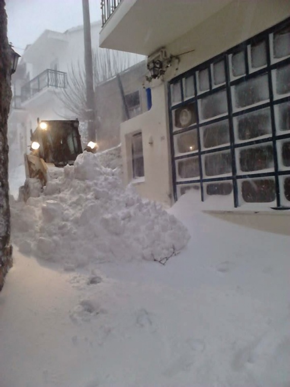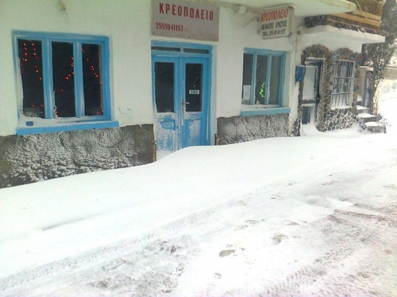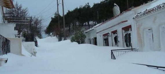 Το χιόνι κάλυψε τις πόρτες των σπιτιών της Σαμοθράκης, ύστερα από τη συνεχή χιονόπτωση στο νησί.
