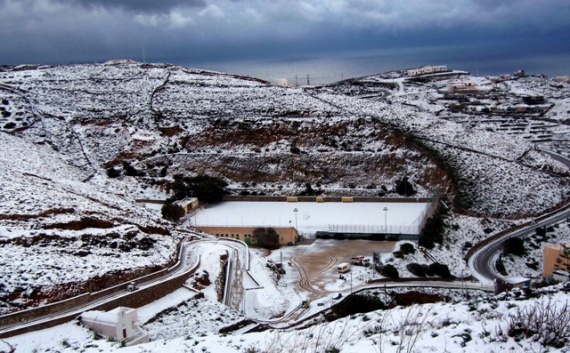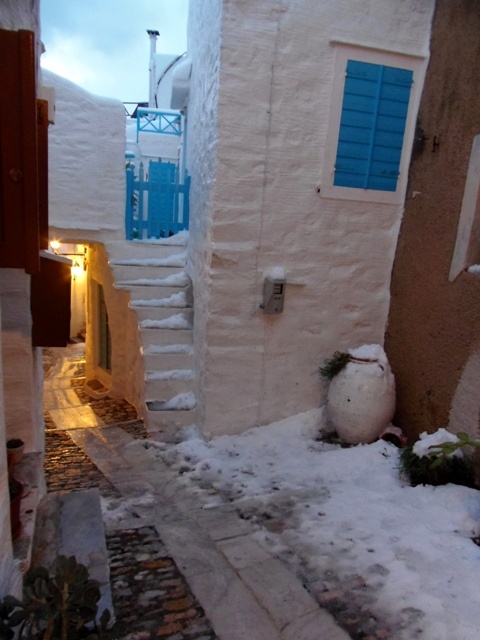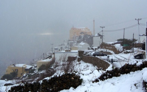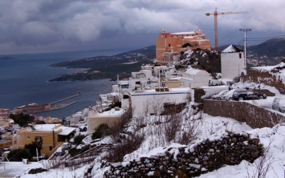 Μαγεύουν οι εικόνες από τις χιονισμένες Κυκλάδες.