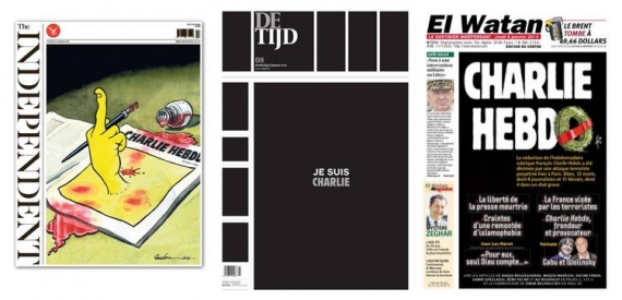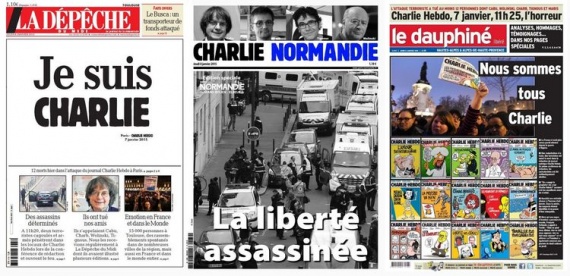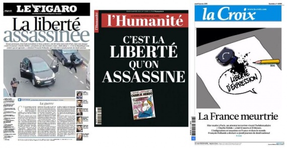 "Είμαστε όλοι Charlie" και "Δολοφονούν την ελευθερία" είναι οι κύριοι τίτλοι που δεσπόζουν στις γαλλικές εφημερίδες.