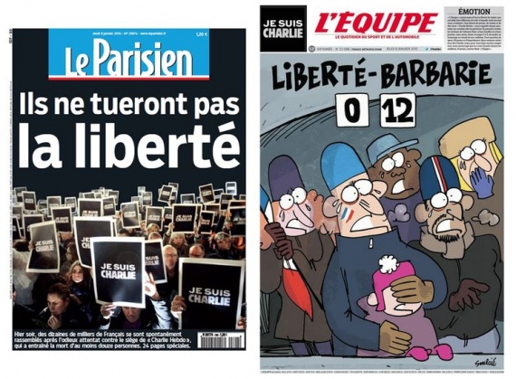 Γροθιά στο στομάχι τα πρωτοσέλιδα του γαλλικού αλλά και του διεθνούς τύπου, την επόμενη μέρα από το μακελειό στο Charlie Hebdo.