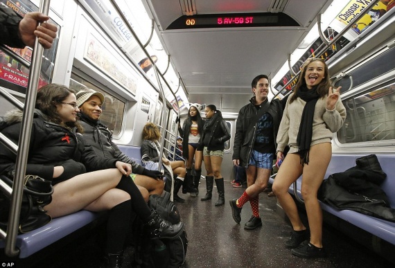 Την «Ημέρα χωρίς παντελόνια στο Μετρό» γιόρτασαν την Κυριακή χιλιάδες κάτοικοι της Νέας Υόρκης, του Λονδίνου, του Μιλάνου, του Βουκουρεστίου, του Μεξικού και του Βερολίνου.
