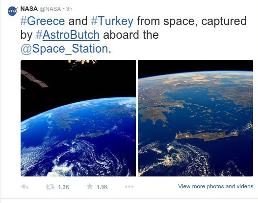 Συγκεκριμένα, τις εικόνες δημοσίευσε η NASA στον επίσημο λογαριασμό της στο Twitter, με το σχόλιο: «Η Ελλάδα και η Τουρκία από το διάστημα. Απαθανατίστηκαν από τον αστροναύτη Butch Wilmore πάνω στον Διαστημικό Σταθμό».