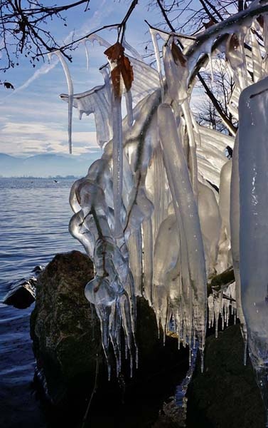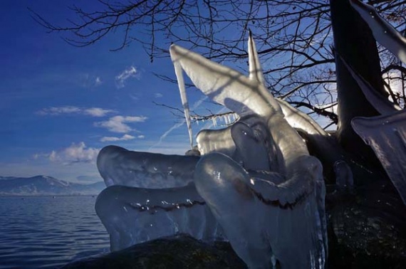 Μαγευτικές εικόνες μας χάρισε για μια ακόμη φορά η φύση. Ο πάγος γύρω από τη λίμνη της Καστοριάς μετέτρεψε σε κρυστάλλινα στολίδια δημιουργήματα ανθρώπου και φύσης.