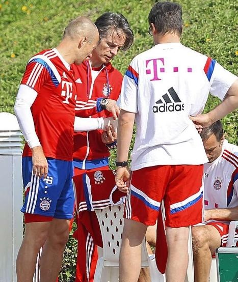 Ο Ρόμπεν που σύμφωνα με τη γερμανική εφημερίδα τραυματίστηκε στα τρία δάχτυλα του αριστερού χεριού δέχτηκε τις πρώτες βοήθειες και αποχώρησε από την προπόνηση με δεμένο χέρι…