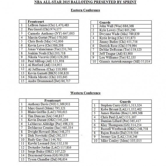 Ανακοινώθηκαν από το ΝΒΑ οι πεντάδες του All Star Game, που θα γίνει στις 15 Φεβρουαρίου στη Νέα Υόρκη. Ο Στεφ Κάρι ξεπέρασε στο νήμα τον Λεμπρόν Τζέιμς ως ο παίκτης με τις περισσότερες ψήφους του κοινού έχοντας 1.513.324 έναντι 1.470.483 του «βασιλιά».