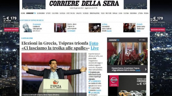 Corriere della sera: "Ο Τσίπρας θριαμβεύει στις ελληνικές εκλογές"