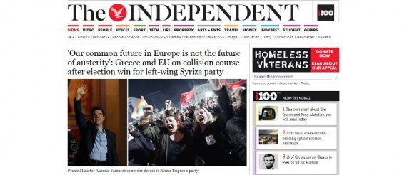 The Independent: «Το κοινό μας ευρωπαϊκό μέλλον, δεν είναι ένα μέλλον λιτότητας»: Σε σύγκρουση Ελλάδα και ΕΕ μετά την εκλογική νίκη του αριστερού ΣΥΡΙΖΑ