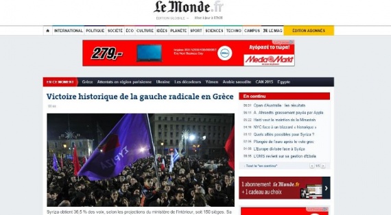 Le Monde: "Ιστορική νίκη για τη ριζοσπαστική Αριστερά στην Ελλάδα"