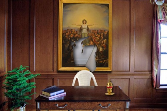 Μετά τα όσα παραπλανητικά διέδωσαν για το θέμα της παράδοσης-παραλαβής, κατασκεύασαν και διέδωσαν ισχυρισμούς ότι δήθεν σκίστηκε ο πίνακας “η Ελλάς Ευγνωμονούσα” του Θ. Βρυζάκη, που ο ίδιος ο Πρόεδρος της Νέας Δημοκρατίας κ. Αντώνης Σαμαράς επανατοποθέτησε εκεί.