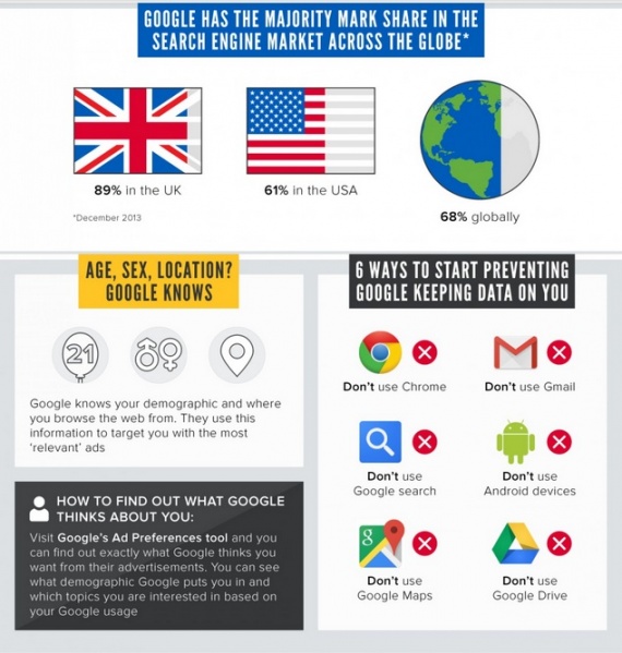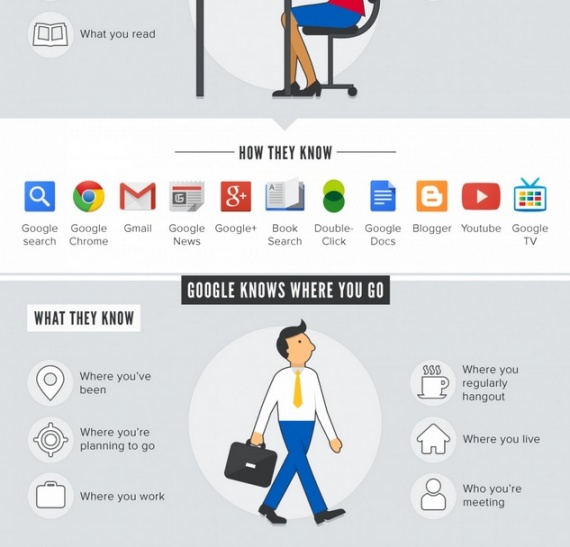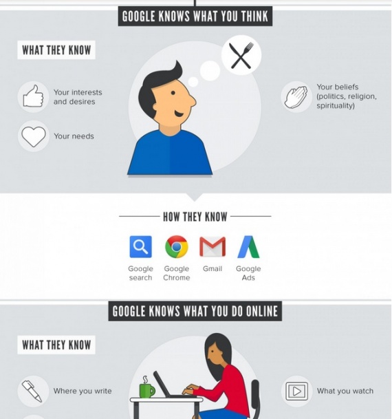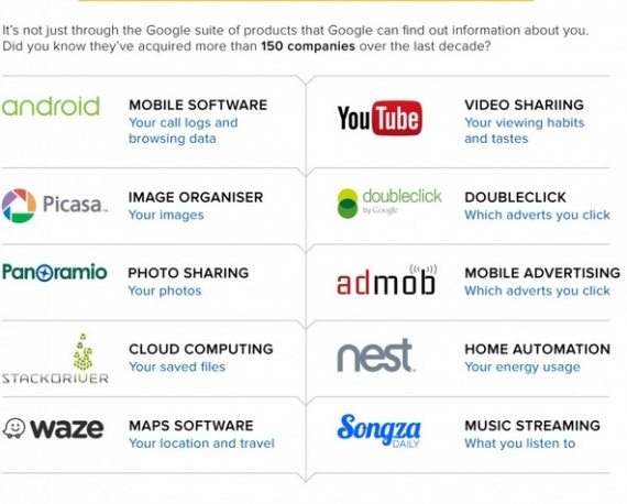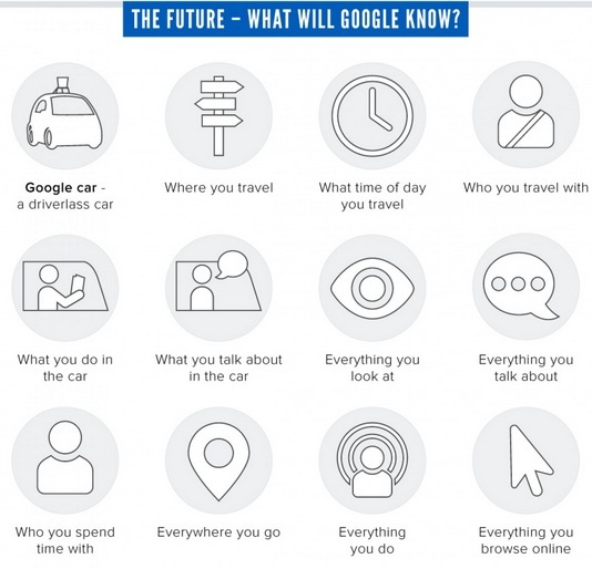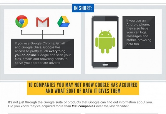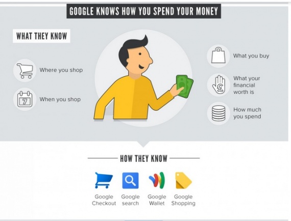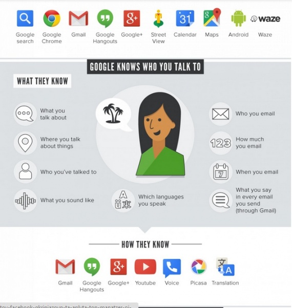 Χρησιμοποιώντας εργαλεία και εφαρμογές της Google, η εταιρεία έχει πρόσβαση σε όλα τα δεδομένα που αφορούν τους χρήστες της όπως, το που ξοδεύουν τα χρήματά τους, τις προτιμήσεις τους, το που πηγαίνουν και με ποιους μιλάνε.