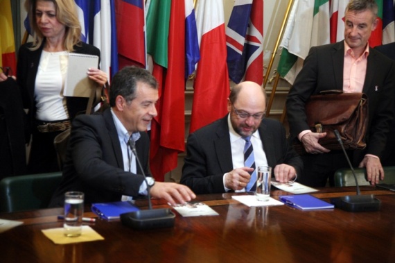 «Για μένα θα ήταν προτιμότερο ο κ. Τσίπρας να είχε συνεργαστεί με το Ποτάμι και όχι με το κόμμα ΑΝΕΛ, πράγμα το οποίο έπραξε. Αλλά πρέπει να σεβαστούμε τα πράγματα όπως διαμορφώθηκαν» δήλωσε ο πρόεδρος του Ευρωπαϊκού Κοινοβουλίου, Μάρτιν Σουλτς, μετά τη συνάντησή του με τον επικεφαλής του Ποταμιού, Σταύρο Θεοδωράκη, στο πλαίσιο της ολιγόωρης επίσκεψής του στην Αθήνα.