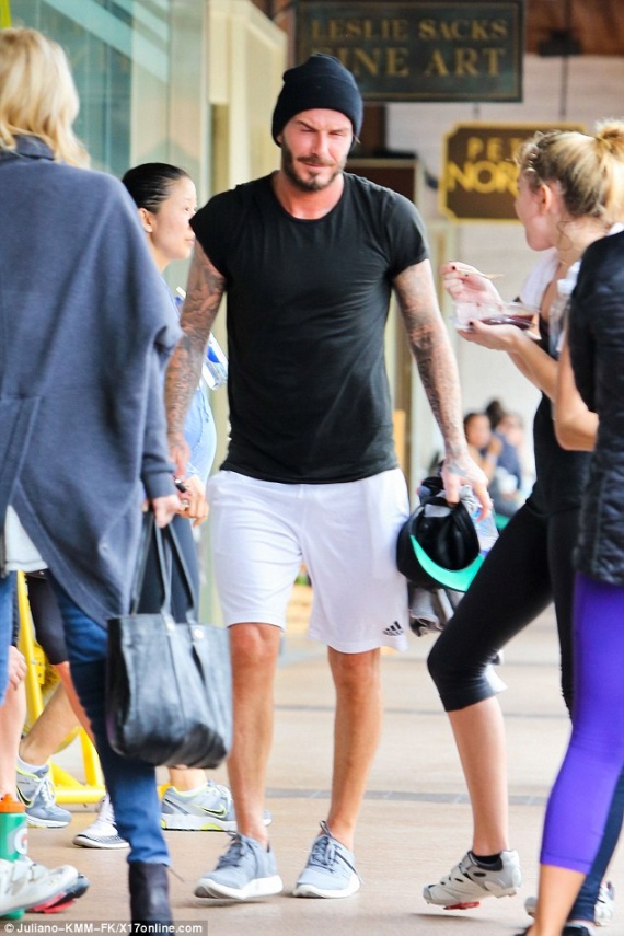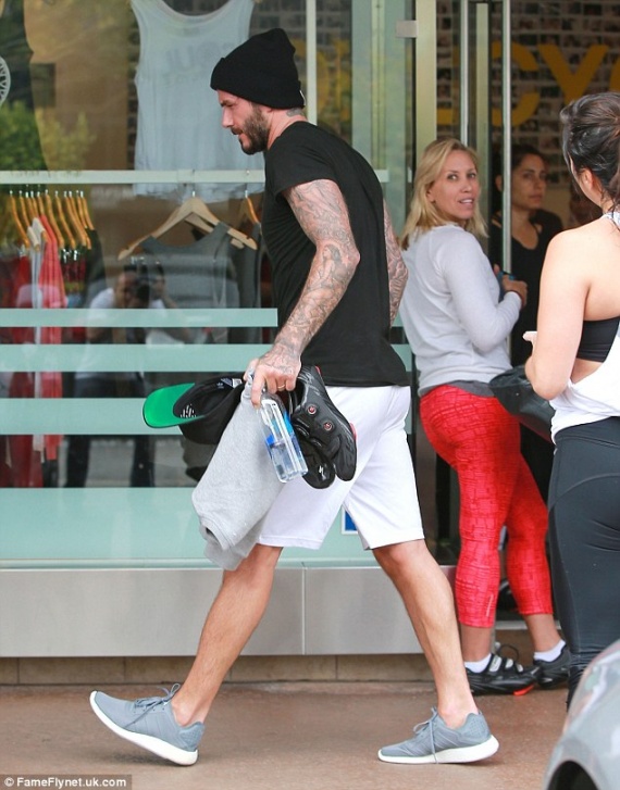 Τον είπε η κόρη του, Χάρπερ, «χοντρό» κι αυτός έτρεξε στα γυμναστήρια για να επανακτήσει την καλή του φόρμα. Η αλήθεια βέβαια, είναι ότι δεν την έχασε και ποτέ. Το αποδεικνύουν οι φωτογραφίες. Από το γυμναστήριο πάντως, βγήκε ιδρωμένος κρατώντας τα κλειδιά του, ένα μπουκάλι νερό, ένα γκρίζο φούτερ και ένα ζευγάρι παπούτσια.